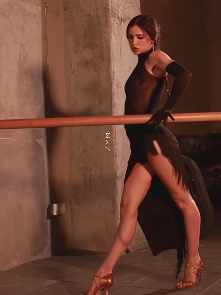Der hohe Seitenschlitz ist eine funktionale Eigenschaft dieser Latin-Wettkampfkleider. Er öffnet sich genau dort, wo Ihre Beinlinien am straffsten sind, sodass jede Bewegung länger und schärfer wirkt. In Bewegung weht der Saum um den Schlitz, und das gesamte schwarze Tanzkleid wirkt kühn und dennoch kontrolliert. Die Menge an gezeigter Haut ist maßvoll, sodass Stärke und Anmut gleichermaßen zur Geltung kommen – genau das, was Wertungsrichter bei professionellen Tanzkleidern sehen möchten.