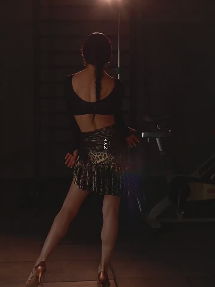 Der tiefe U-Ausschnitt vorne und der hoch taillierte Saum verlängern optisch Hals und Beine und formen eine saubere Linie, die in Latin- und Tango-Posen umwerfend aussieht. Unter den Bühnenlichtern schimmern die Leopardenfolien-Details zart durch das Mesh und verleihen diesem schwarzen Dance-Top eine luxuriöse Note, während es dennoch raffiniert bleibt. Kombiniert mit hoch taillierten Leggings, Latin-Röcken oder fließenden Tango-Hosen verleiht dieses Mesh-Dance-Top Ihnen sofort einen eleganten Schichteneffekt. Das macht es nicht nur zu einem der stilvollsten Dance-Tops für Frauen, sondern auch zu einer cleveren Wahl, wenn Sie praktische Tanzkostüm-Oberteile für verschiedene Programme benötigen.