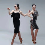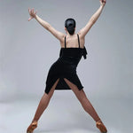 Vestido de baile floral preto com babados e costas abertas em tecido de veludo para dança latina, tango e salsa