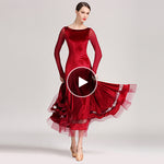 Vestido de baile Borgonha - Vestido de baile de veludo para salão de baile Vestido de baile Borgonha para valsa, tango e festas noturnas